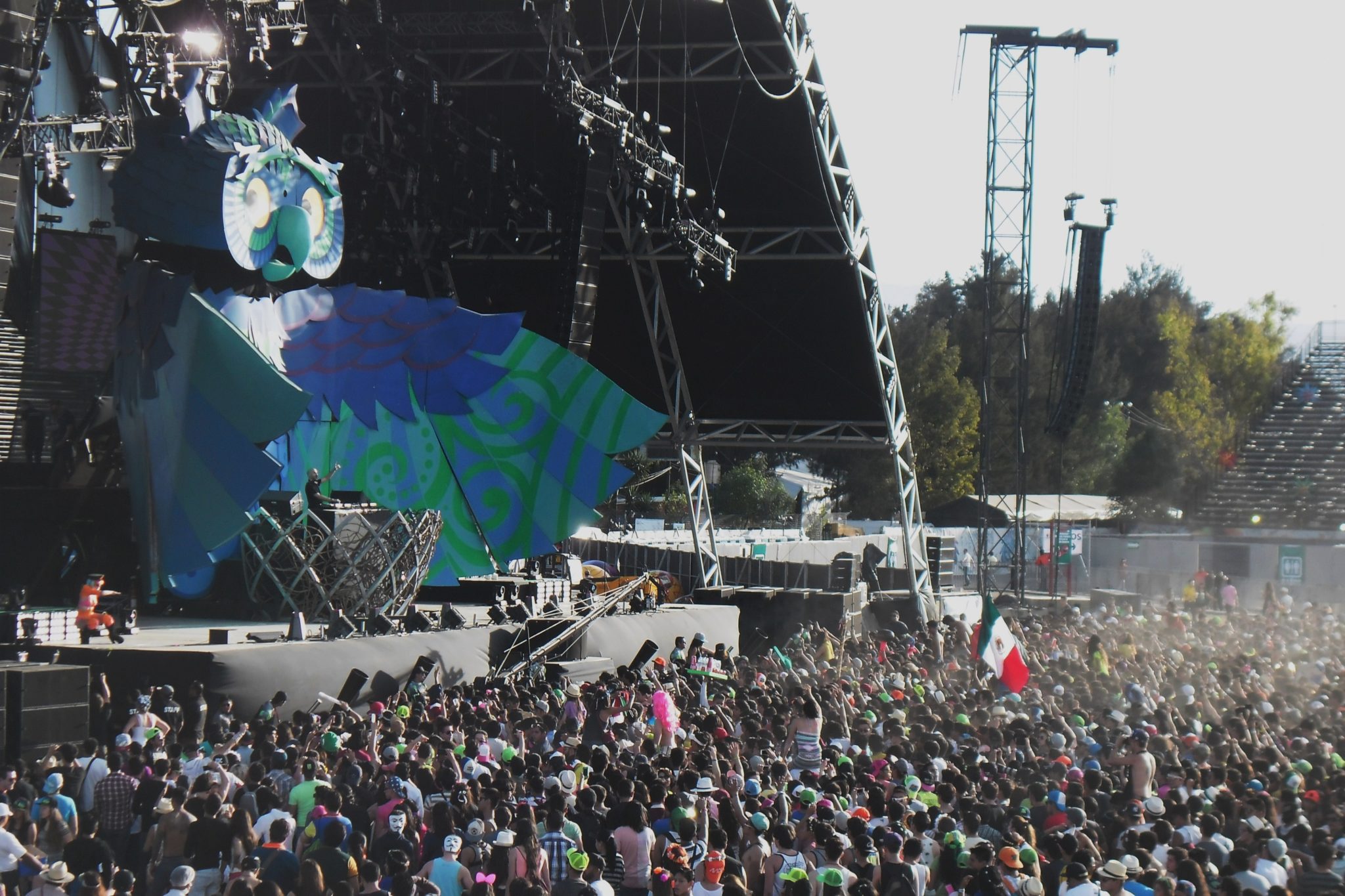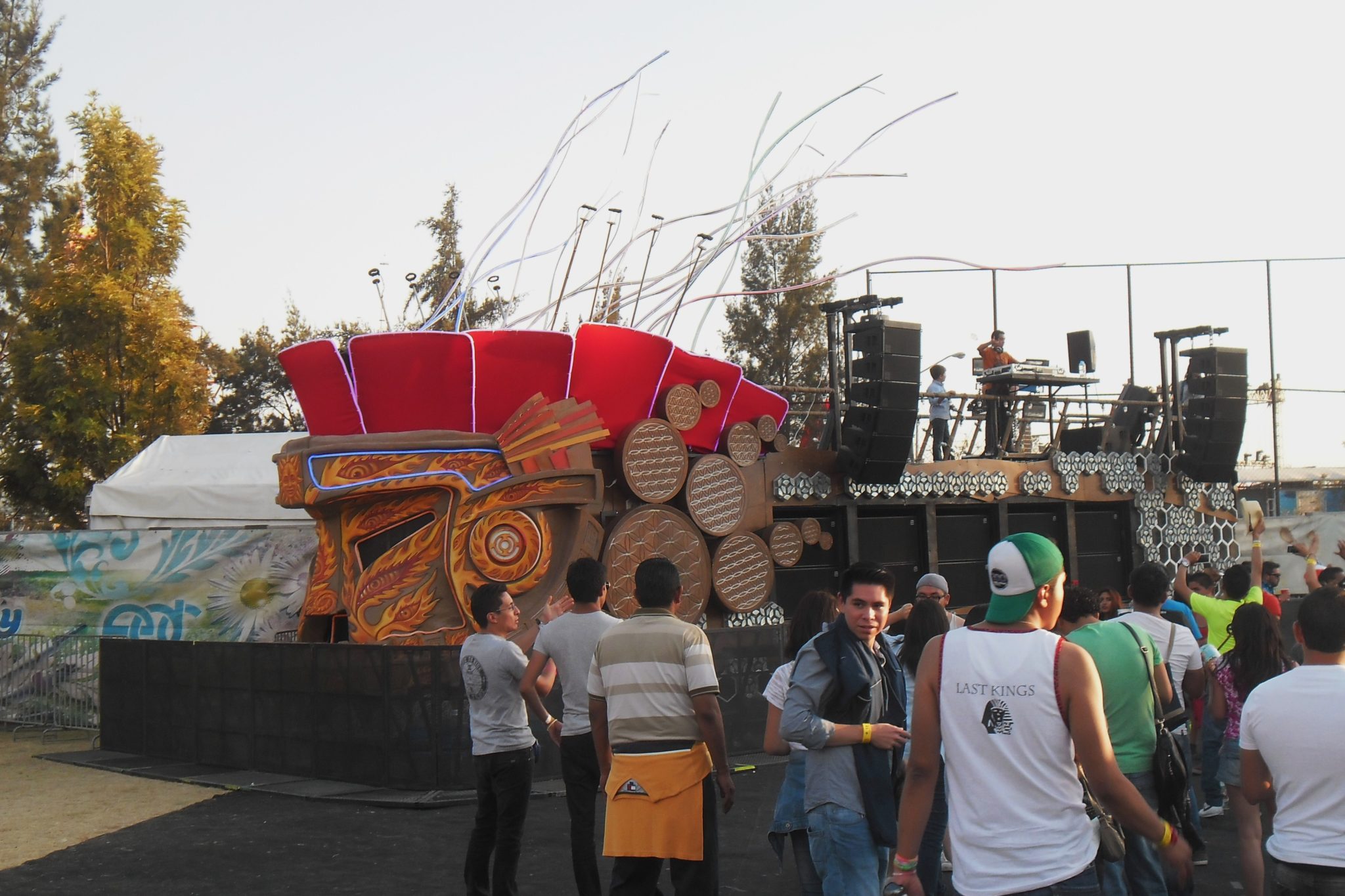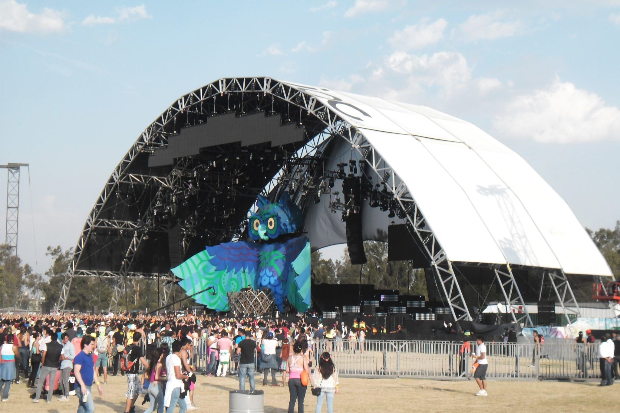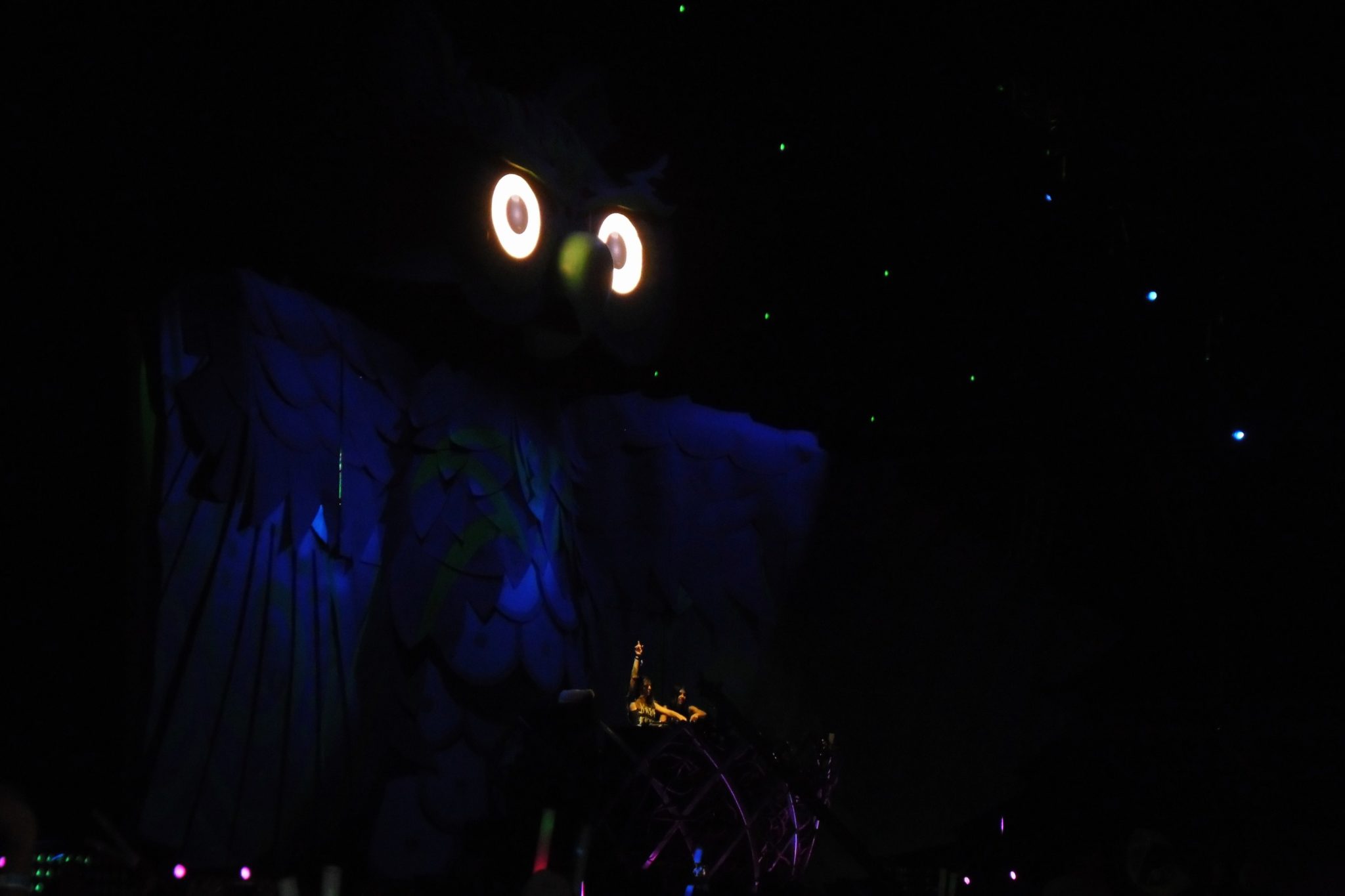 La noche caía pero el escenario principal, el KineticField nos mostraba su esplendoroso escenario de primer mundo donde el búho en cada cambio de Dj cerraba sus alas para que al comienzo de presentar a uno nuevo las abriera y engalanara el evento, también movía la cabeza a los lados y de arriba para abajo con el ritmo de la música, al mismo que sus ojos cambian para parecer molesto o mostrar un cambio en la imagen de ellos.