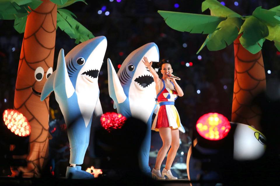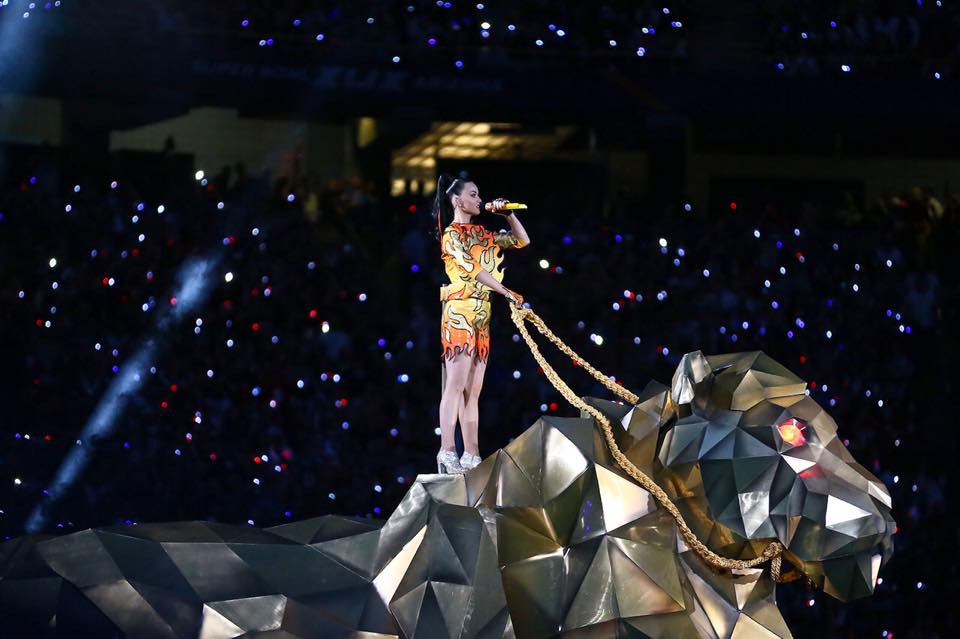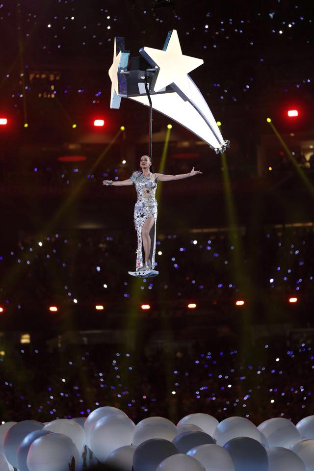 Katty Perry deslumbró y puso a bailar a los presentes y televidentes con su música, está tarde en el espectáculo de medio tiempo del Super Bowl XLIX, realizado en el estadio de la Universidad de Phoenix.