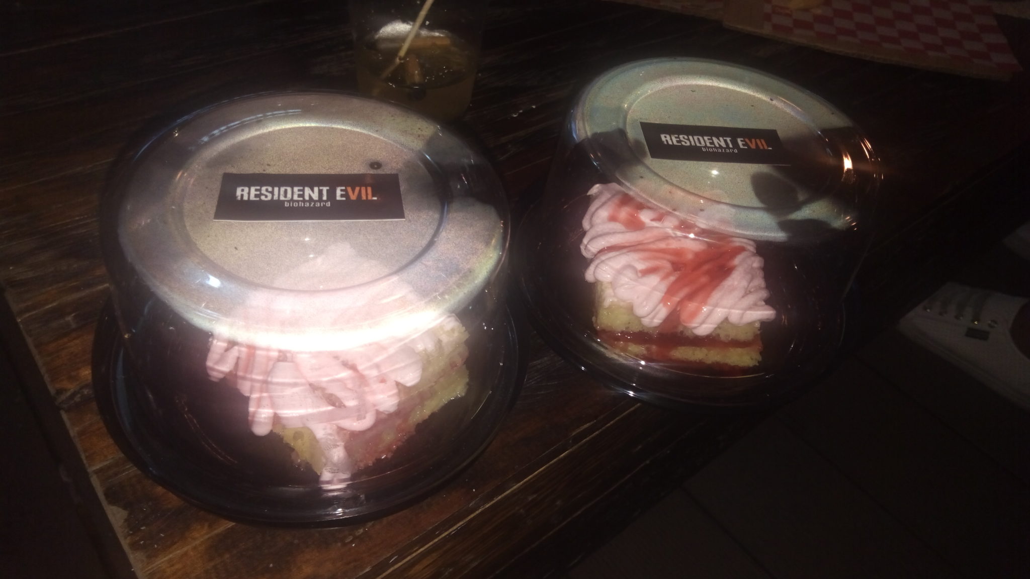 Desde pizzas hechas por la misma Marguerite (ya saben, la madre de la familia Baker) hasta pasteles viscerales y bebidas preparadas con el T-virus, disfrutamos cada momento. Y por supuesto, estaciones en donde la gente podía echarle un vistazo al demo del juego.